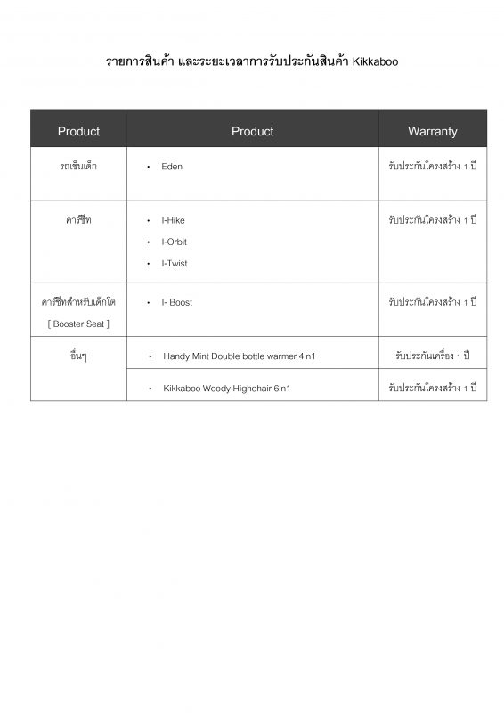 เงื่อนไขการรับประกันสินค้า Kikkaboo
