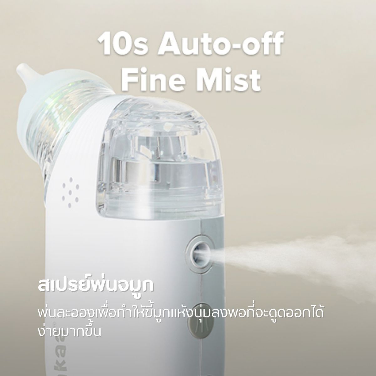 ✅หัวพ่น “สเปรย์ละอองละเอียด” (mist-sprayer) ช่วยให้น้ำมูกที่ติดอยู่ในจมูกอ่อนตัวก่อนดูด