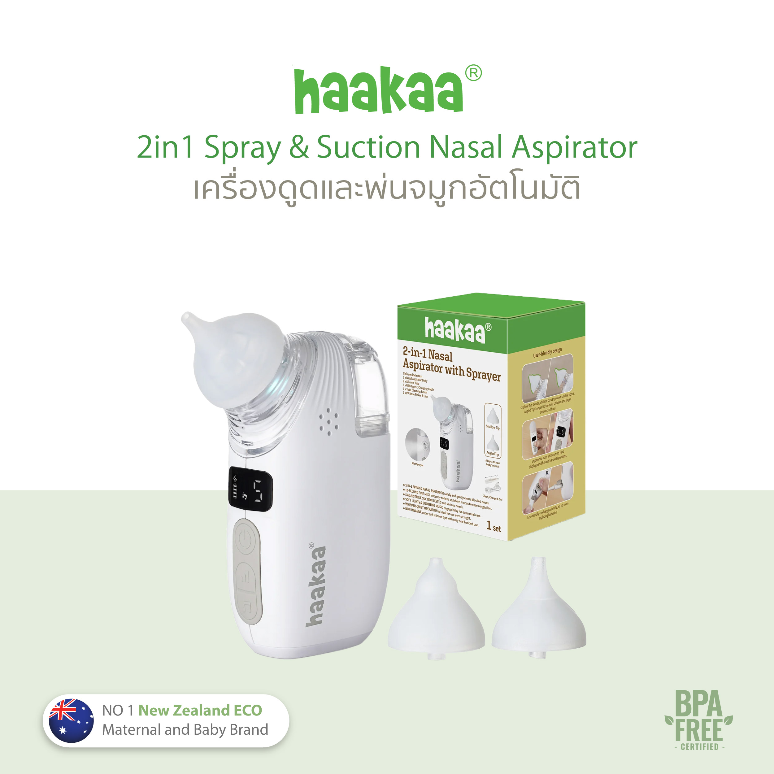 ใช้งานง่าย หายใจโล่ง ✨หมดกังวลปัญหาเบบี๋คัดจมูก น้ำมูกเยอะ จมูกตัน Haakaa 2-in-1 Nasal Aspirator with Sprayer เครื่องดูดน้ำมูกอัตโนมัติสำหรับเด็ก พร้อมหัวสเปรย์ฉีดพ่นน้ำเกลือในตัว ดูแลจมูกลูกรักอย่างอ่อนโยน สะอาด และปลอดภัย