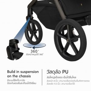 • ล้อหน้าหมุนได้ 360 องศา พร้อมกลไกการล็อค
