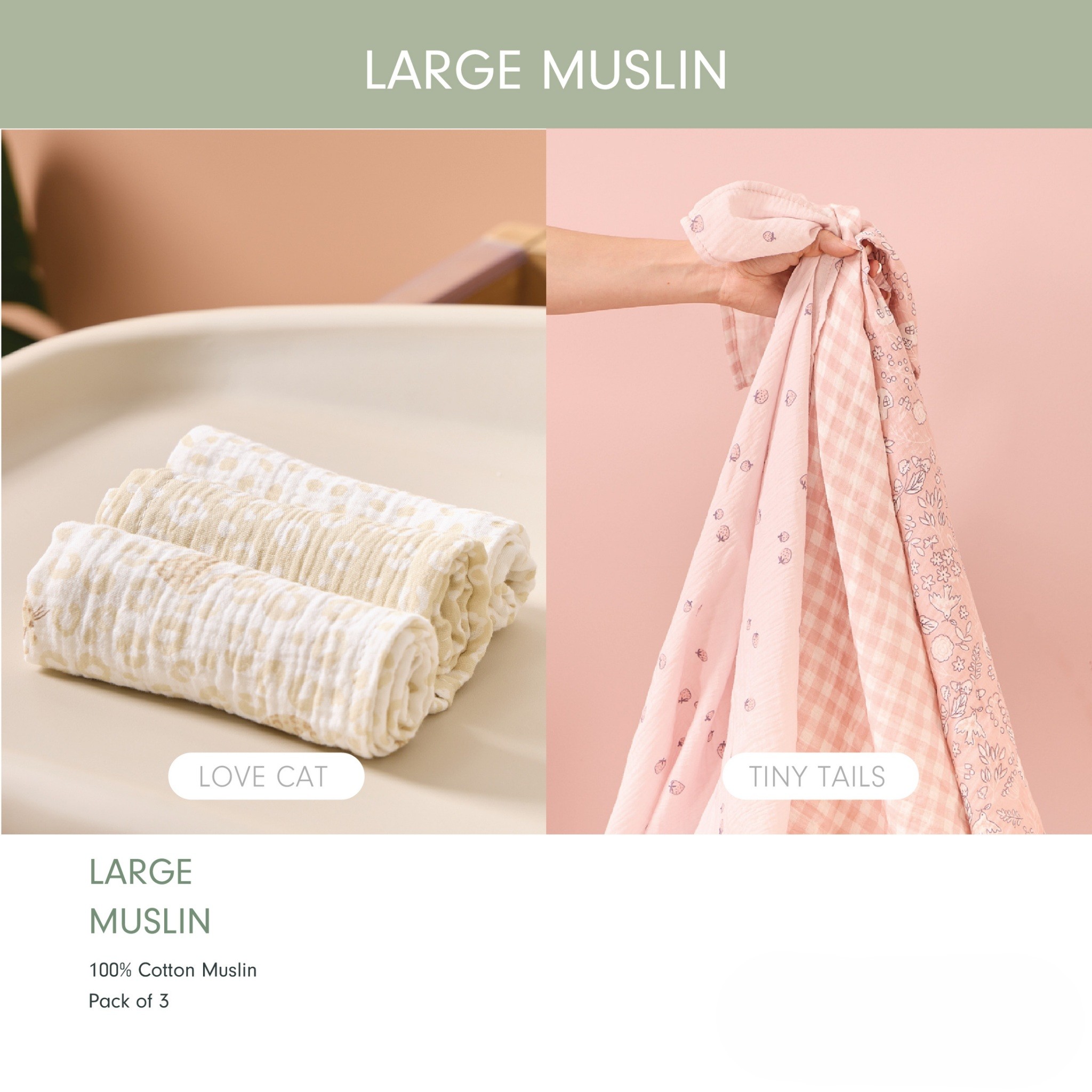 เปลี่ยนทุกการดูแลลูกน้อยให้เป็นเรื่องง่ายด้วย ผ้าห่อตัวมัสลินเนื้อนุ่มพิเศษ ที่ออกแบบมาเพื่อการใช้งานในทุกๆ วัน ด้วยสัมผัสที่อ่อนโยนและดีไซน์โทนสีที่ดูอบอุ่น สบายตา