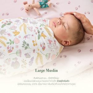 • สัมผัสที่นุ่มนวล ผลิตจากผ้าฝ้ายมัสลิน (Cotton Muslin) เกรดพรีเมียม ระบายอากาศได้ดีเยี่ยม ไม่ระคายเคืองผิวที่บอบบางของทารก